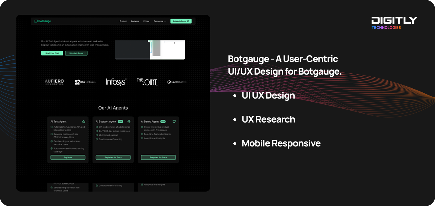 Digitly Technologies designed the UI/UX for Botgauge’s web app, enabling users to automate end-to-end tests with ease.